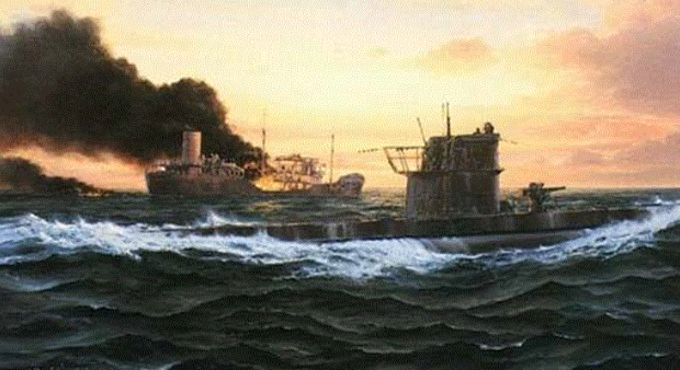 Representación artística del ataque de un U-Boot