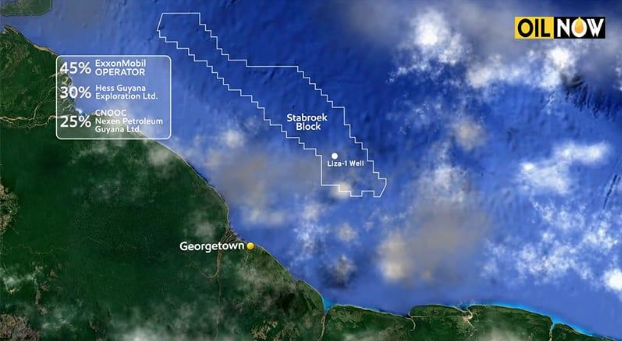 Mapa del Bloque Stabroek que muestra la ubicación del yacimiento Liza.