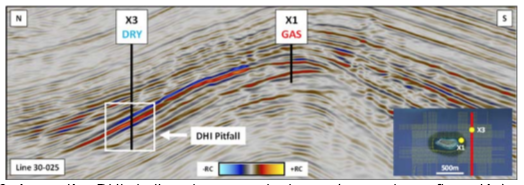 Si el DHI se encuentra en un área geológicamente improbable, la anomalía es, muy probablemente, un falso positivo.