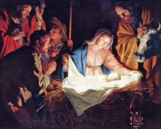 Con los otros pastores, campesinos y lugareños que ya están allí, se une en la celebración del Nacimiento en un pesebre de Belén, un instante divino y trascendente que iluminará los corazones por siglos.