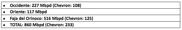 Como resultado de la falta de inversiones y problemas con la logística de los diluentes, todas las actividades están enfocadas en reducir la producción diferida. La producción nacional de crudo se ha estabilizado en torno a ochocientos sesenta mil barriles por día (860 Mbpd).