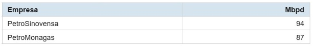 Las empresas mixtas que operan bajo licencias de la OFAC y los nuevos contratos establecidos en la LOH recientemente modificada —bajo la modalidad de contratar al socio minoritario privado como «Operador»— están produciendo los siguientes volúmenes: