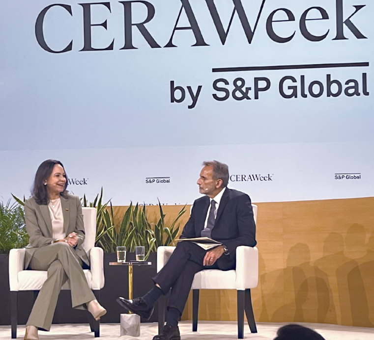 María Corina Machado entrevistada por Carlos Pascual, vicepresidente sénior de Energía Global y Asuntos Internacionales de S&P Global (Foto: CERAWeek by S&P Global).