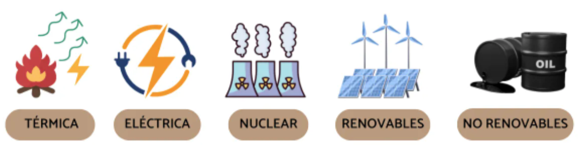 La lista de fuentes de energía a lo largo de la historia y hasta la actualidad es extensa e incluye petróleo, gas natural, solar, eólica, hidroeléctrica, geotérmica, biomasa, carbón, nuclear y mareomotriz, entre las más importantes.