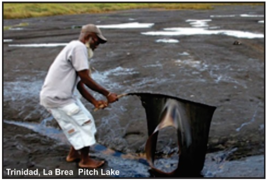 Otro pozo perforado en 1857 fue el que realizó la compañía estadounidense Merrimac Company, alcanzando una profundidad de 280 pies en La Brea (término español que significa «brea» o «alquitrán»), situada en el sureste de Trinidad, en el Caribe. Este «Lago de Brea» es el más grande del mundo, con un área aproximada de 100 acres (41 hectáreas). Se estima que tiene una profundidad de 250 pies (76 metros) en su centro y que contiene aproximadamente 10 millones de toneladas de brea.