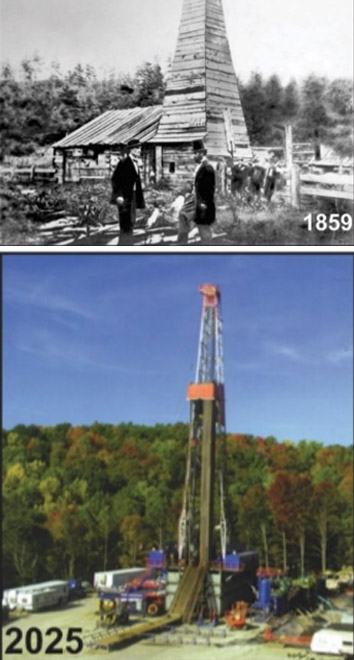 No está del todo claro qué constituye el primer pozo petrolífero comercial y no existe consenso al respecto. Sin embargo, el pozo de Edwin Drake, perforado en 1859 cerca de Titusville, Pensilvania, se considera popularmente el primer pozo moderno.