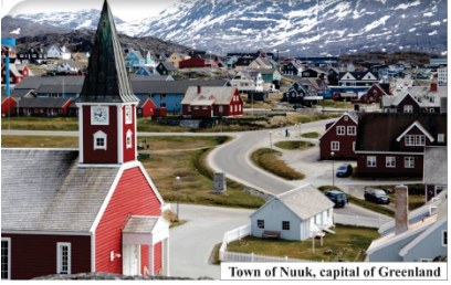 - Nuuk, la capital y ciudad más grande de Groenlandia, es el centro político, económico y cultural. Su población es de aproximadamente 20.000 habitantes.