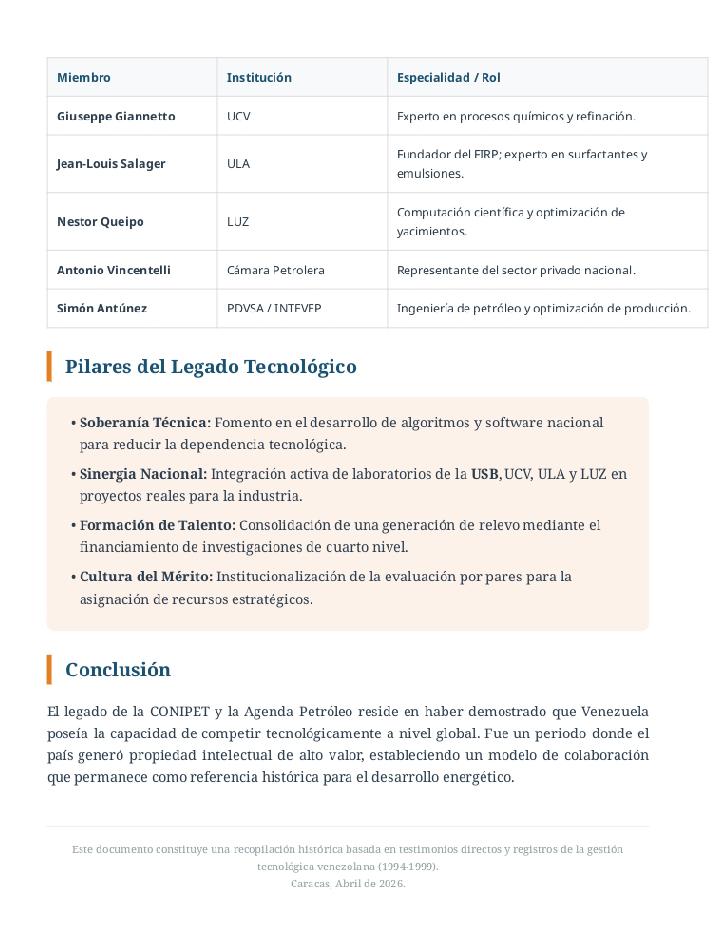 Manejada en parte por la CONIPET (Comisión Nacional de Investigaciones Petroleras), de la cual fue Vladimiro su Presidente, esta parte de la agenda fue responsable de evaluar, aprobar y canalizar el financiamiento de decena de proyectos de investigación y desarrollo que se enmarcaban en líneas de interés específicas, muy relacionadas con la APERTURA PETROLERA de ese momento.
