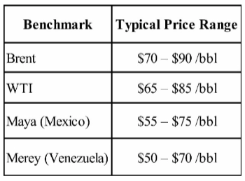 Las mezclas de crudo más pesadas, como el Maya de México y el Merey de Venezuela, suelen cotizar con descuentos respecto al WTI debido a la complejidad de la refinación, las limitaciones de transporte y el contenido de azufre. Sin embargo, cuando la capacidad mundial de refinación de crudo es inferior a la demanda del mercado, estos descuentos pueden disminuir significativamente.