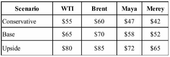 La siguiente tabla presenta un escenario de precios base para Texas, México y Venezuela (2026):