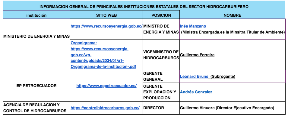 Sugerencia: cuando visiten lo sitios web de cualquier Institución Pública ecuatoriana recuerden que existe la obligación legal que haya un vínculo referenciado como “Transparencia”, el cual tiene información que tiene que ser subida mensualmente para acceso de los ciudadanos, donde se señalan aspectos como Organigramas, Directorio, Presupuesto, etc. En el caso de EP PETROECUADOR está en https://www.eppetroecuador.ec/?p=3968