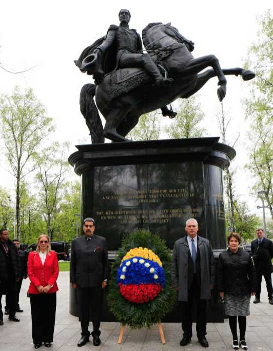 Este monumento a Simón Bolívar se erigió en Moscú en 2023, una decisión indudablemente vinculada a la imagen anticolonial del Libertador, ya que Rusia buscaba posicionarse como aliada de las antiguas colonias occidentales. El 8 de mayo de 2025, invitados a Moscú para participar en las celebraciones del 80.º aniversario del fin de la Segunda Guerra Mundial, los presidentes de Venezuela, Nicolás Maduro, y Cuba, Miguel Díaz-Canel, depositaron flores ante el monumento.