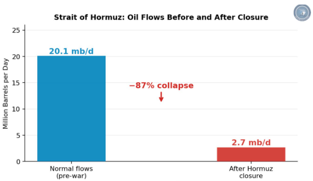 Hormuz flows: from 20.1 mb/d to 2.7 mb/d in just over 2 weeks