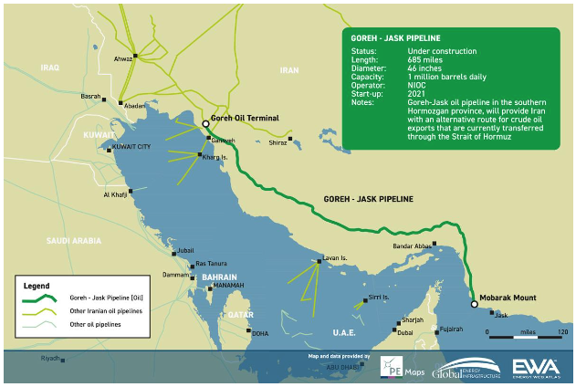 • Una paralización casi total de los flujos en dirección oeste a través del estrecho de Ormuz.